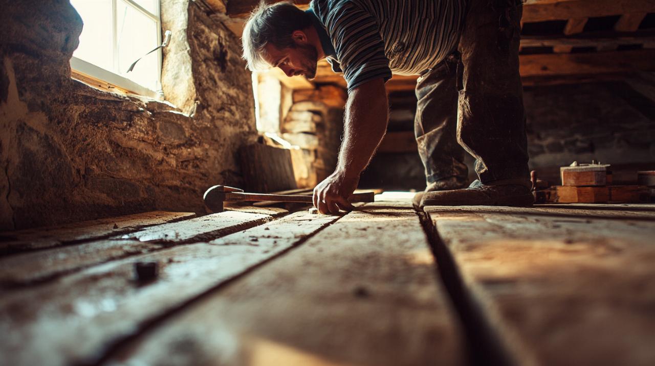 Avant d'entreprendre toute réparation plancher bois dans une maison ancienne Bretagne, un diagnostic plancher approfondi s'impose comme une étape incontournable. Le climat breton, caractérisé par une humidité persistante et des variations thermiques modérées, soumet les boiseries à des contraintes spécifiques. L'inspection minutieuse permet d'identifier les pathologies invisibles à première vue mais potentiellement dévastatrices pour la structure. Cette évaluation méthodique combine observations visuelles, mesures instrumentales et tests tactiles pour dresser un tableau complet de l'état du plancher. L'utilisation d'outils appropriés comme l'hygromètre pour mesurer le taux humidité bois, une lampe torche pour explorer les zones sombres et un maillet pour tester la solidité des lames garantit un diagnostic fiable qui orientera précisément les travaux nécessaires.